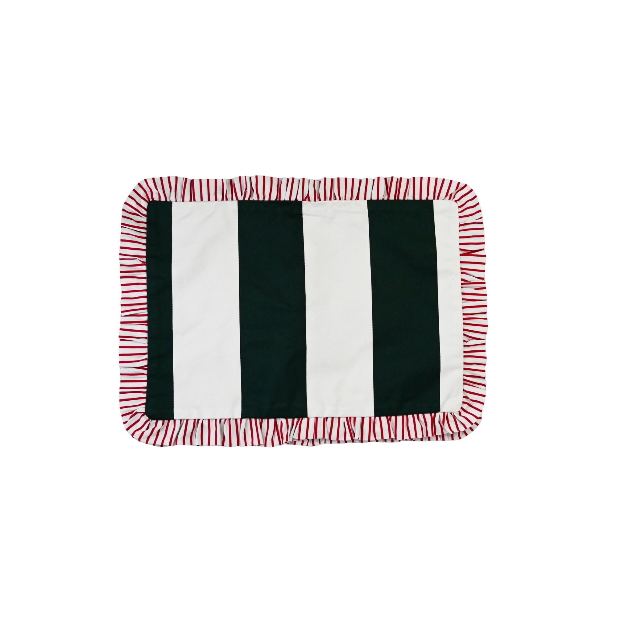 Beautiful handmade cotton table cloth with red and white striped ruffle. Mix and match with...